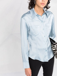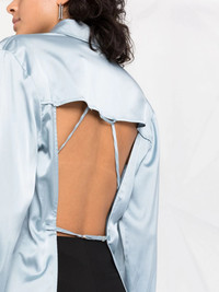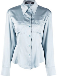 La Chemise Mentalo shirt light blue classic collar front button fastening stretch-design long sleeves open back Imported Composition Viscose 96%, Spandex/Elastane 4% SIZE & FIT Model measurements Height 5 ft 9 in(1.76 m) Bust/Chest 31.88 in(81 cm) Hips 35.43 in(90 cm) Waist 24.8 in(63 cm) FittingInformation This piece fits true to size. We recommend you get your regular size Cut for a slim fit Made with a mid-weight stretch fabric Washing instructions Dry Clean Only