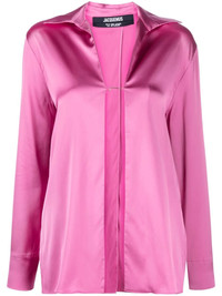 La Chemise Notte satin shirt Jacquemus is synonymous with innovative, minimalist design. Showcased on this iconic long-sleeve shirt from the brand's SS22 collection, the garment features a gold-tone hardware logo plaque at the front and is constructed from tonal, satin-finish material. Highlights - Pink - Tonal design - Satin finish - Spread collar - Long sleeves - Logo plaque - Gold-tone hardware Imported Composition Viscose 96%, Spandex/Elastane 4% SIZE & FIT Model measurements Height 5 ft 10 in(1.77 m) Bust/Chest 32.67 in(83 cm) Hips 35.43 in(90 cm) Waist 23.62 in(60 cm) Measurement LENGTH 26.77 in(68 cm) FittingInformation This piece fits true to size. We recommend you get your regular size Cut for a loose fit Made with a mid-weight stretch fabric