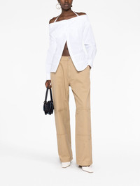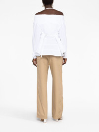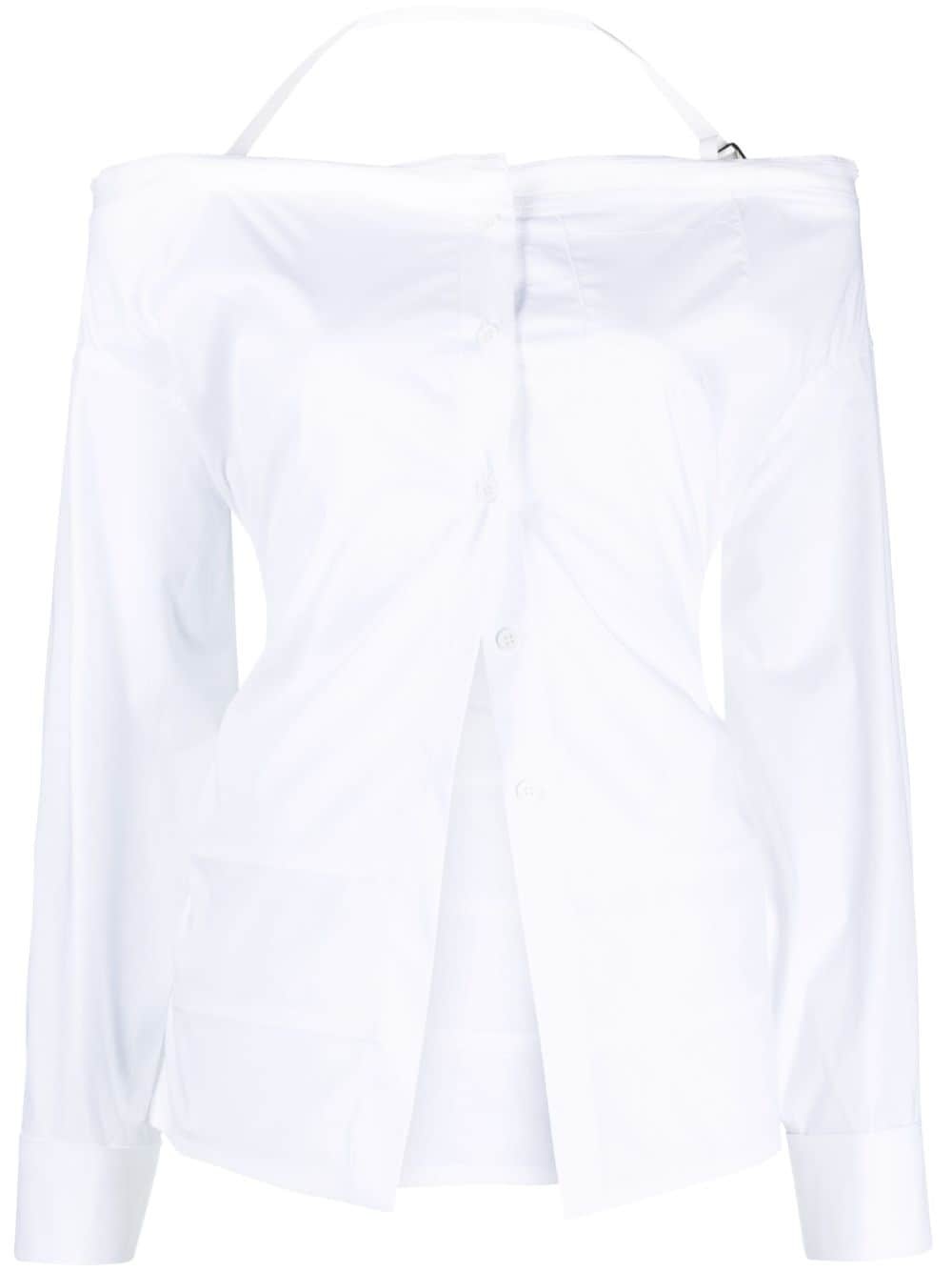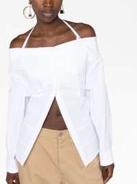La chemise Peplo blouse Highlights - White - Stretch-cotton - Off-shoulder - Crossover shoulder straps - Front button fastening - Long sleeves - Belted waist - Front slit Made in France Composition Cotton 96%, Spandex/Elastane 4% SIZE & FIT Model measurements Height 5 ft 11 in(1.8 m) Bust/Chest 32.67 in(83 cm) Hips 36.22 in(92 cm) Waist 24.4 in(62 cm) FittingInformation Designed for a relaxed fit, this piece allows for comfort and movement when worn Made from a midweight stretch fabric, this piece offers elasticity and flexibility when worn This piece fits true to size – take your usual size Washing instructions Hand Wash