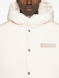 La Doudoune jacket Highlights - Beige - Shell - Padded design - Front press-stud fastening - Slouchy hood - Funnel neck - Long sleeves - Elasticated cuffs - Detachable applique logo to the chest - Two side inset pockets - Full lining - Drawstring hem Imported Composition Lining: Polyamide 100%, Cotton 100% Outer: Polyamide 100% SIZE & FIT Model measurements Height 6 ft 0 in(1.84 m) Bust/Chest 35.82 in(91 cm) Hips 37 in(94 cm) Waist 28.34 in(72 cm) FittingInformation Designed to be unstructured, offering a loose fit throughout The internal drawstring at the hem allows for fitted preferences Made from a padded non-stretch fabric, giving it no natural elasticity
