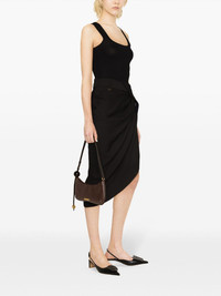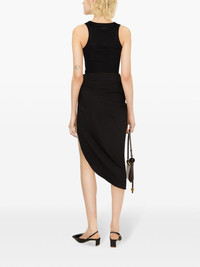 La Jupe Saudade asymmetric skirt Highlights - Black - Deconstructed design - Keyring attachment - Draped detailing - Side zip fastening - Side slit - Asymmetric hem - Below-knee length Imported Composition Viscose 88%, Polyamide 12% SIZE & FIT Model measurements Height 5 ft 10 in(1.79 m) Bust/Chest 31.49 in(80 cm) Hips 35.03 in(89 cm) Waist 23.62 in(60 cm) Washing instructions Hand Wash