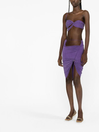 La jupe Espelho ruched miniskirt Jacquemus' distinctive approach to minimalist style is showcased on this skirt from the brand's SS23 collection. Fashioned in a grape purple hue, this asymmetric design is characterised by ruched drawstring details that create a snug-fitting silhouette. Imported Composition Cupro 93%, Spandex/Elastane 7% SIZE & FIT Model measurements Height 5 ft 10 in(1.79 m) Bust/Chest 31.1 in(79 cm) Hips 35.03 in(89 cm) Waist 24.01 in(61 cm) FittingInformation This piece fits true to size. We recommend you get your regular size Cut for a slim fit Made with a mid-weight stretch fabric Washing instructions Dry Clean Only