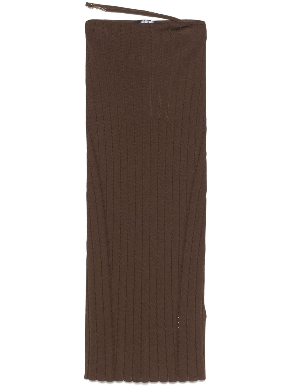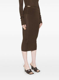 La jupe Pralu midi skirt Highlights - Chocolate brown - Elasticated waistband - Adjustable waist strap - Logo plaque - Scallop hem Imported Composition Viscose 76%, Polyamide 24% SIZE & FIT Model measurements Height 5 ft 9 in(1.75 m) Bust/Chest 34.64 in(88 cm) Hips 36.61 in(93 cm) Waist 26.37 in(67 cm) Measurement LENGTH 29.92 in(76 cm) FittingInformation This midi-length skirt is intended to be worn high on the waist Made with a lightweight knit, this piece offers some stretch