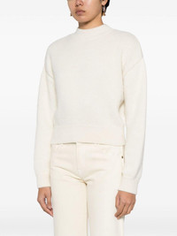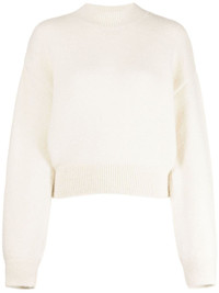 La Maille Jacquemus logo-intarsia jumper Highlights - Light beige - Alpaca wool-blend - Intarsia-knit logo - Crew neck - Drop shoulder - Long sleeves - Ribbed cuffs and hem Imported Composition Alpaca 56%, Polyamide 34%, Merino 10% SIZE & FIT Model measurements Height 5 ft 10 in(1.77 m) Bust/Chest 31.49 in(80 cm) Hips 35.43 in(90 cm) Waist 25.19 in(64 cm) FittingInformation Designed to be unstructured, offering a loose fit throughout The ribbed hem offers a close, comfortable fit Made with a midweight knit, this piece offers some stretch This piece fits true to size – take your usual size