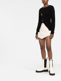 La Maille Pau asymmetric cardigan Jacquemus stays true to their minimalist aesthetic while reconstructing the classic cardigan silhouette in this tonal black iteration, apparent from its asymmetric front button fastening. Highlights - Black - Alpaca wool-blend - Asymmetric design - Button fastening - Crew neck - Long sleeves - Knitted construction Made in Italy Composition Acrylic 33%, Polyamide 33%, Alpaca Wool 28%, Wool 6% SIZE & FIT Model measurements Height 5 ft 11 in(1.8 m) Bust/Chest 31.49 in(80 cm) Hips 36.61 in(93 cm) Waist 24.4 in(62 cm) FittingInformation This piece fits true to size. We recommend you get your regular size Cut for a slim fit Made with a mid-weight fabric