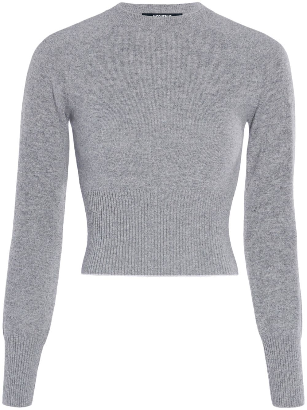 La Maille Soglia sweater Highlights - Light grey - Cashmere blend - Fine knit - Ribbed trim - Contrasting trim - Crew neck - Long sleeves - Logo patch to the rear - Straight hem Imported Composition Cashmere 96%, Polyamide 4%