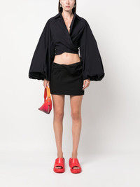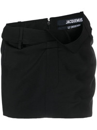 La Mini Jupe Bahia miniskirt The drape waistband and low rise of this Bahia miniskirt from Jacquemus speak to the brand’s propensity for deconstructed silhouettes. Highlights - Black - Virgin wool - Draped detailing - Mid-rise - Belt loops - Concealed side zip fastening - Rear welt pocket - Straight hem - Thigh-length Imported Composition Outer: Virgin Wool 100% Lining: Cotton 97%, Elastane 3% SIZE & FIT Model measurements Height 5 ft 10 in(1.78 m) Bust/Chest 33.46 in(85 cm) Hips 36.22 in(92 cm) Waist 23.22 in(59 cm) FittingInformation This mini-length skirt is intended to be worn low on the hips Made from a midweight fabric This piece fits true to size – take your usual size Measurement HIPS 37.99 in(96.5 cm) LENGTH 13.5 in(34.3 cm) WAIST 30 in(76.2 cm) Washing instructions Dry Clean Only