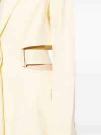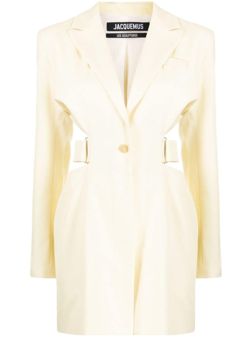 La Robe Bari blazer minidress Highlights - Pastel yellow - Cut-out detailing - Notched lapels - Front button fastening - Long sleeves - Buttoned cuffs - Belted waist - Chest welt pocket - Rear welt pocket - Above-knee length - Straight hem Imported Composition Outer: Viscose 100% Lining: Acetate 48%, Cotton 46%, Elastane 6% SIZE & FIT Model measurements Height 5 ft 9 in(1.75 m) Bust/Chest 31.88 in(81 cm) Hips 35.03 in(89 cm) Waist 23.22 in(59 cm) FittingInformation Designed for a slim fit that sits just away from the body offering a close yet comfortable fit The belt offers adjustability for fitted preferences Made from a midweight stretch fabric, this piece offers elasticity and flexibility when worn This piece fits true to size – take your usual size Washing instructions Dry Clean Only