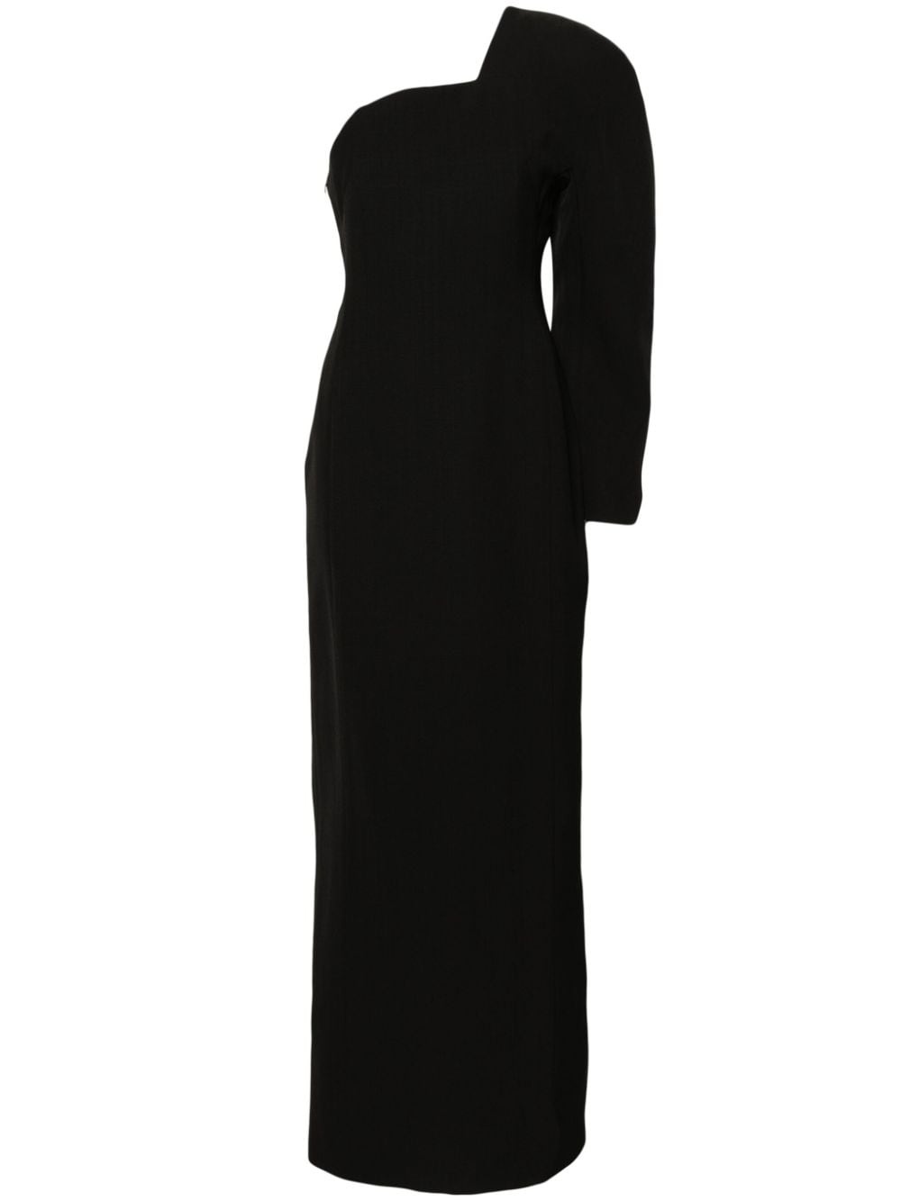 La Robe Pablo one-shoulder maxi dress Highlights - Black - Textured finish - Asymmetric neck - Shoulder pad - Single long sleeve - Concealed side hook and zip fastening - Fitted waistline - Column silhouette - Central rear vent - Straight hem - Long length Imported Composition Outer: Polyamide 69%, Viscose 58%, Silk 42%, Spandex/Elastane 31% Lining: Cotton 48%, Acetate 47%, Spandex/Elastane 5% SIZE & FIT Model measurements Height 5 ft 9 in(1.76 m) Bust/Chest 31.88 in(81 cm) Hips 35.43 in(90 cm) Waist 24.8 in(63 cm) Measurement SLEEVE LENGTH 27.55 in(70 cm) HIPS 32.28 in(82 cm) LENGTH 58.66 in(149 cm) WAIST 23.62 in(60 cm) FittingInformation Designed for a slim fit that sits just away from the body offering a close yet comfortable fit The internal shoulder pads offer a structured shape Made from a midweight stretch fabric, this piece offers elasticity and flexibility when worn This piece fits true to size – take your usual size