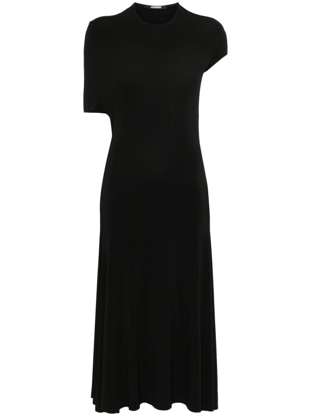 La Robe Salerno midi dress Highlights - Black - Stretch-jersey - Asymmetric design - Round neck - Draped detailing - Short sleeves - Flared hem - Mid-length Imported Composition Viscose 71%, Polyester 21%, Spandex/Elastane 8% SIZE & FIT Model measurements Height 5 ft 10 in(1.78 m) Bust/Chest 33.85 in(86 cm) Hips 36.61 in(93 cm) Waist 26.77 in(68 cm) FittingInformation Designed for a slim fit that sits just away from the body offering a close yet comfortable fit Made from a midweight stretch fabric, this piece offers elasticity and flexibility when worn Washing instructions Machine Wash