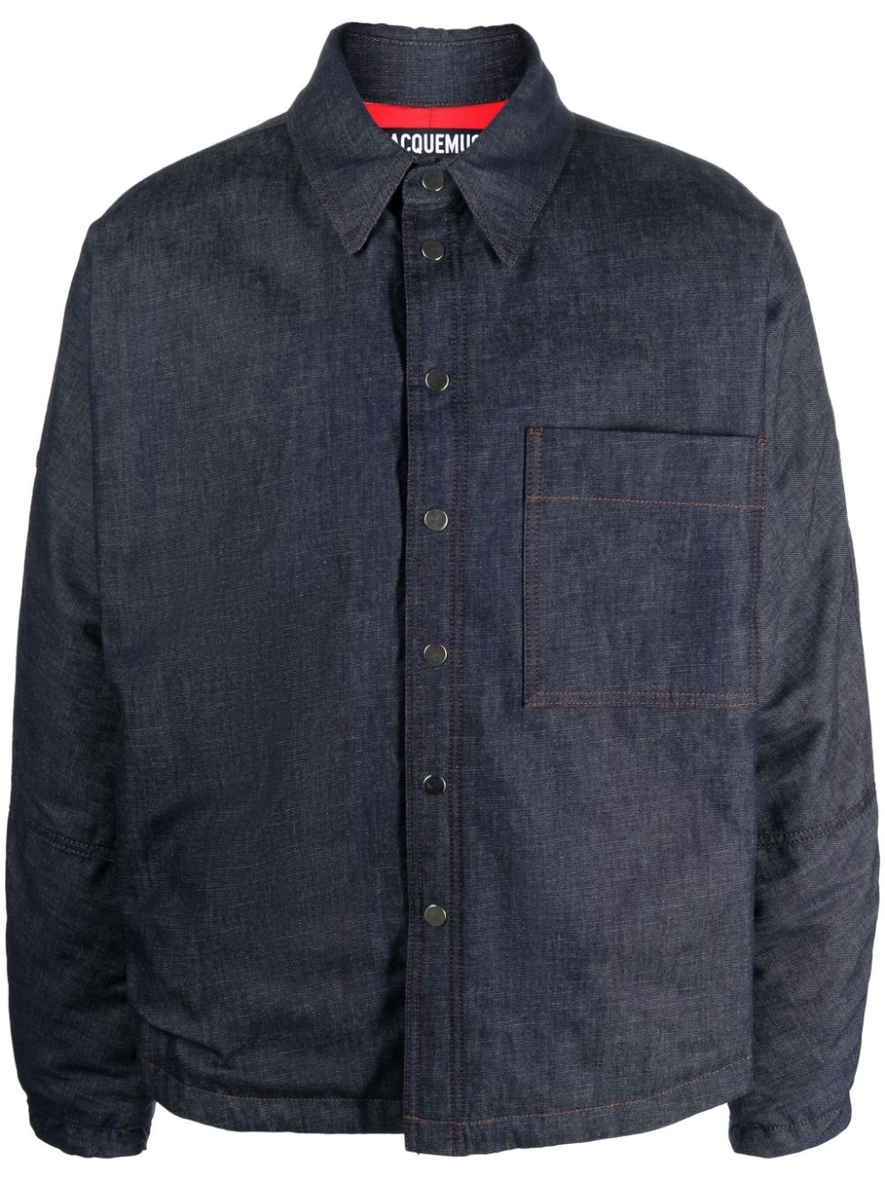 La Surchemise de Nimes overshirt Jacquemus pays homage to the denim’s roots with this overshirt. Named La Surchemis de Nimes, it references the supposed birthplace of the now ubiquitous fabric. It arrives in an indigo blue hue and is enhanced with a patch pocket on the chest while a logo tag to the rear lends a branded finish/ Highlights - Indigo blue - Cotton - Classic collar - Long sleeves - Logo tag - Front press-stud fastening - Chest patch pocket - Straight hem Made in Italy Composition Regenerative Cotton 100% SIZE & FIT Model measurements Height 6 ft 0 in(1.84 m) Bust/Chest 36.22 in(92 cm) Hips 35.43 in(90 cm) Waist 26.77 in(68 cm) FittingInformation Designed to be unstructured, offering a loose fit throughout Made from a padded non-stretch fabric, giving it no natural elasticity This piece fits true to size – take your usual size