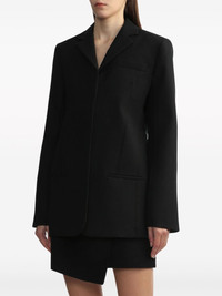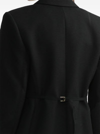 La veste Caraco inside-out blazer The La veste Caraco jacket by Jacquemus reveals the brand's playful detailing in the form of an adjustable D-ring buckle rear fastening with strap detailing. Crafted from virgin wool in a classic black colour for an elegant look. Highlights - Black - Virgin wool - Notched lapels - Concealed front fastening - Jetted chest pocket - Two side welt pockets - Long sleeves - Straight hem - D-ring buckle fastening Imported Composition Virgin Wool 100% Washing instructions Read Manufacturer Guidelines