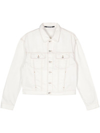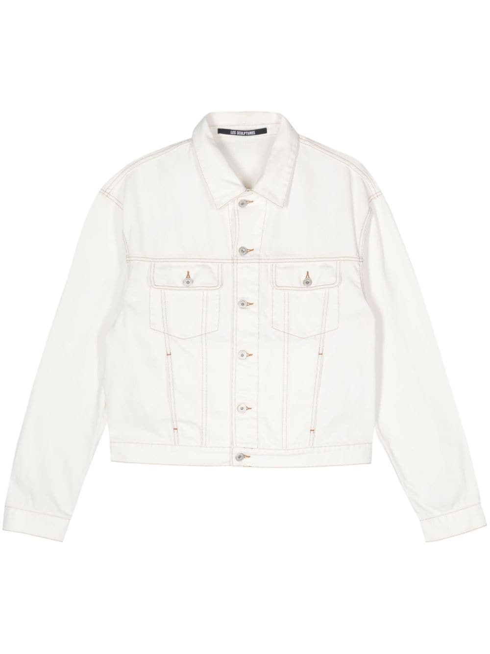 La Veste De-Nimes denim jacket Highlights - Off-white - Denim - Contrast stitching - Classic collar - Long sleeves - Buttoned cuffs - Two front flap pockets - Logo patch to the rear - Adjustable waist rear strap - Straight hem - Front button fastening Imported Composition Cotton 100% Washing instructions Machine Wash