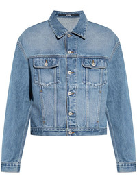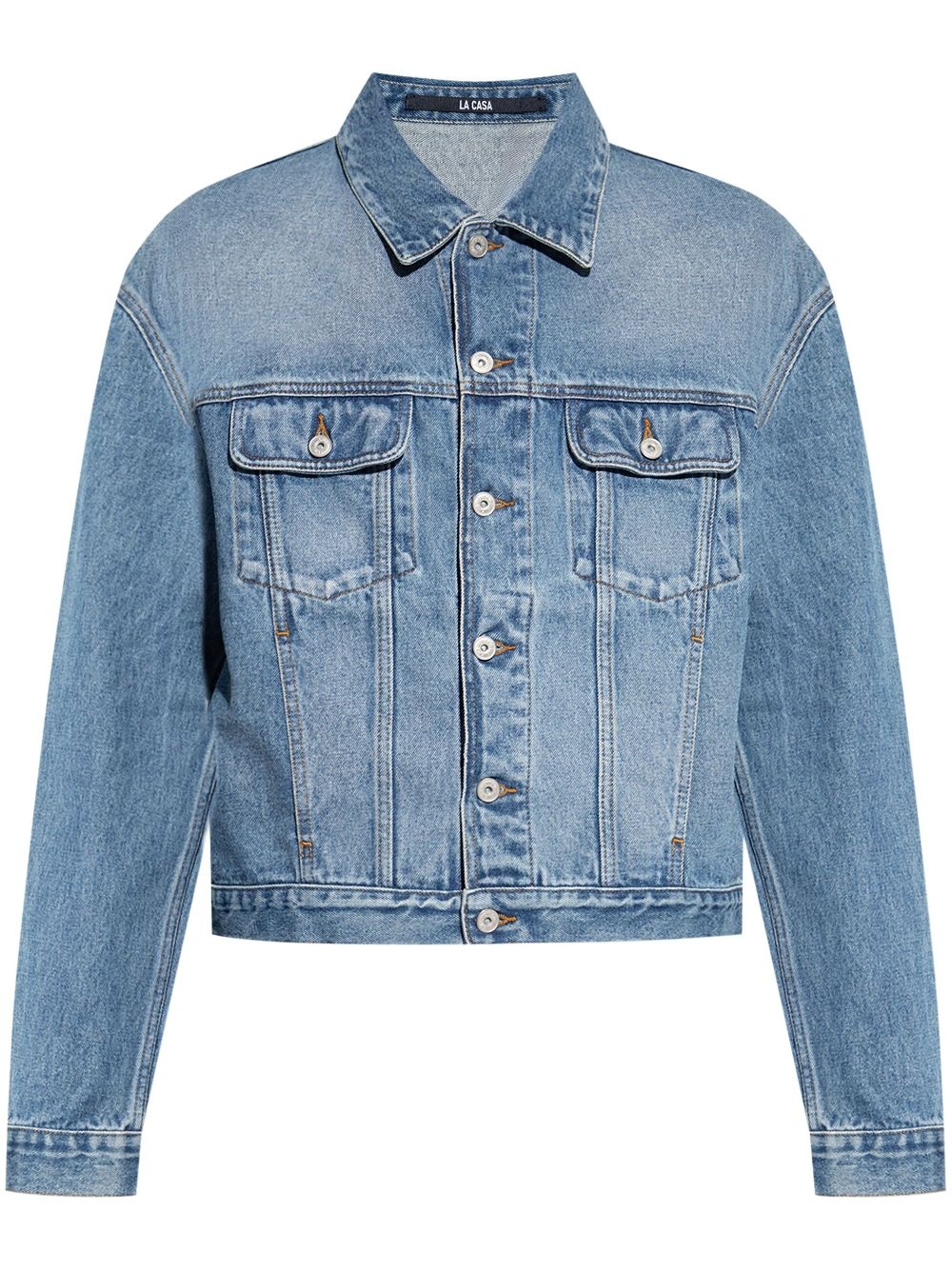 La Veste De-Nimes denim jacket Highlights - Medium blue - Cotton - Washed denim - Contrast stitching - Classic collar - Long sleeves with buttoned cuffs - Two chest flap pockets - Leather tag - Buttoned waist tabs - Straight hem - Front button placket Imported Composition Cotton 100%