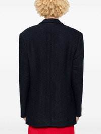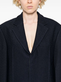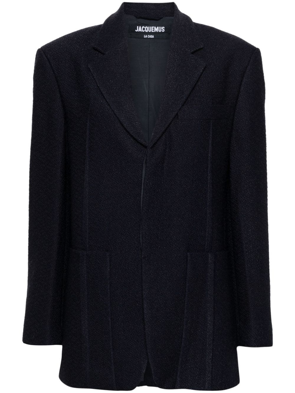 La Veste D'Homme blazer Highlights - Navy blue - Textured finish - Concealed front button fastening - Notched lapels - Shoulder pads - Long sleeves - Split cuffs - Chest welt pocket - Dart detailing - Two front patch pockets - American rear vent - Internal pocket - Full lining - Curved hem Imported Composition Lining: Cotton 48%, Acetate 47%, Elastane 5% Outer: Viscose 71%, Virgin Wool 21%, Polyamide 8% SIZE & FIT Model measurements Height 5 ft 9 in(1.75 m) Bust/Chest 34.64 in(88 cm) Hips 36.61 in(93 cm) Waist 26.37 in(67 cm) FittingInformation Designed for a boxy fit, intended for a loose fit throughout The vented hem offers movement at the rear Made from a midweight fabric Washing instructions Dry Clean Only