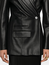 La Veste Tibau Cuir leather blazer Highlights - Black - Lambskin - Panelled design - Notched collar - Front and side button fastenings - Long sleeves with split cuffs - Chest welt pocket - Side welt and flap pockets - Full lining - English rear vents - Straight hem Imported Composition Lining: Viscose 100% Outer: Lamb Skin 100% SIZE & FIT Model measurements Height 5 ft 10 in(1.78 m) Bust/Chest 33.07 in(84 cm) Hips 36.61 in(93 cm) Waist 24.8 in(63 cm) FittingInformation Designed for a slim fit that sits just away from the body offering a close yet comfortable fit The vented hem offers movement at the rear Soft leather has a supple and smooth construction offering some flexibility This piece fits true to size – take your usual size