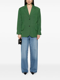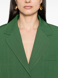 La Veste Titolo blazer Jacquemus’ dark-green La Veste Titolo blazer hails from the Les Sculptures collection inspired by the works and lived-in suites of Swiss artist Giacometti. It’s woven to an oversized silhouette with rounded shoulders that echo the lines of the seamless flap pockets. Highlights - Dark green - Twill weave - Front button fastening - Notched lapels - Shoulder pads - Long sleeves - Buttoned cuffs - Chest welt pocket - Dart detailing - Seamless flap pockets - American rear vent - Internal slip pocket - Partial satin lining Imported Composition Lining: Viscose 100% Outer: Viscose 70%, Silk 30% SIZE & FIT Model measurements Height 5 ft 11 in(1.8 m) Bust/Chest 33.07 in(84 cm) Hips 37.4 in(95 cm) Waist 25.19 in(64 cm) FittingInformation Designed for an oversized fit, offering additional room throughout The internal shoulder pads offer a structured shape Made from a midweight non-stretch fabric This piece fits true to size – take your usual size Measurement SLEEVE LENGTH 24.48 in(62.2 cm) LENGTH 29.01 in(73.7 cm) WAIST 40.98 in(104.1 cm) BUST 40 in(101.6 cm)