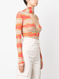 Le Abanaba semi-sheer bodysuit The Abanaba bodysuit mirrors Jacquemus' bold aesthetic. Catching the eye with an asymmetric design and plunging V-neck, the daring look is enhanced by the semi-sheer finish. Highlights - White/multicolour - Asymmetric design - Horizontal stripe pattern - Semi-sheer construction - Plunging v-neck - Pussy-bow collar - Long sleeves - Press-stud fastening - Just a reminder that this piece must be tried on over your own garments. Imported Composition Polyamide 93%, Spandex/Elastane 7% SIZE & FIT Model measurements Height 5 ft 11 in(1.8 m) Bust/Chest 31.49 in(80 cm) Hips 35.43 in(90 cm) Waist 24.4 in(62 cm) FittingInformation Designed for a close fit throughout Made from a lightweight stretch fabric, this piece offers elasticity and flexibility when worn This piece fits true to size – take your usual size Washing instructions Hand Wash