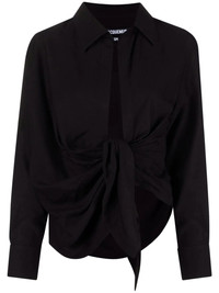 La Chemise Bahia draped shirt Jacquemus offers a laidback take on the humble black shirt. This breezy top has a spread collar and open front accented with a tied sash detail in place of traditional buttons. Highlights - Black - Draped detailing - Knot detailing - Classic collar - Long sleeves Imported Composition Viscose 88%, Polyamide 12% SIZE & FIT Model measurements Height 5 ft 9 in(1.76 m) Bust/Chest 31.88 in(81 cm) Hips 35.43 in(90 cm) Waist 24.8 in(63 cm) Measurement LENGTH 25.98 in(66 cm) FittingInformation Designed for a slim fit that sits just away from the body offering a close yet comfortable fit Made from a midweight non-stretch fabric This piece fits true to size – take your usual size Washing instructions Dry Clean Only