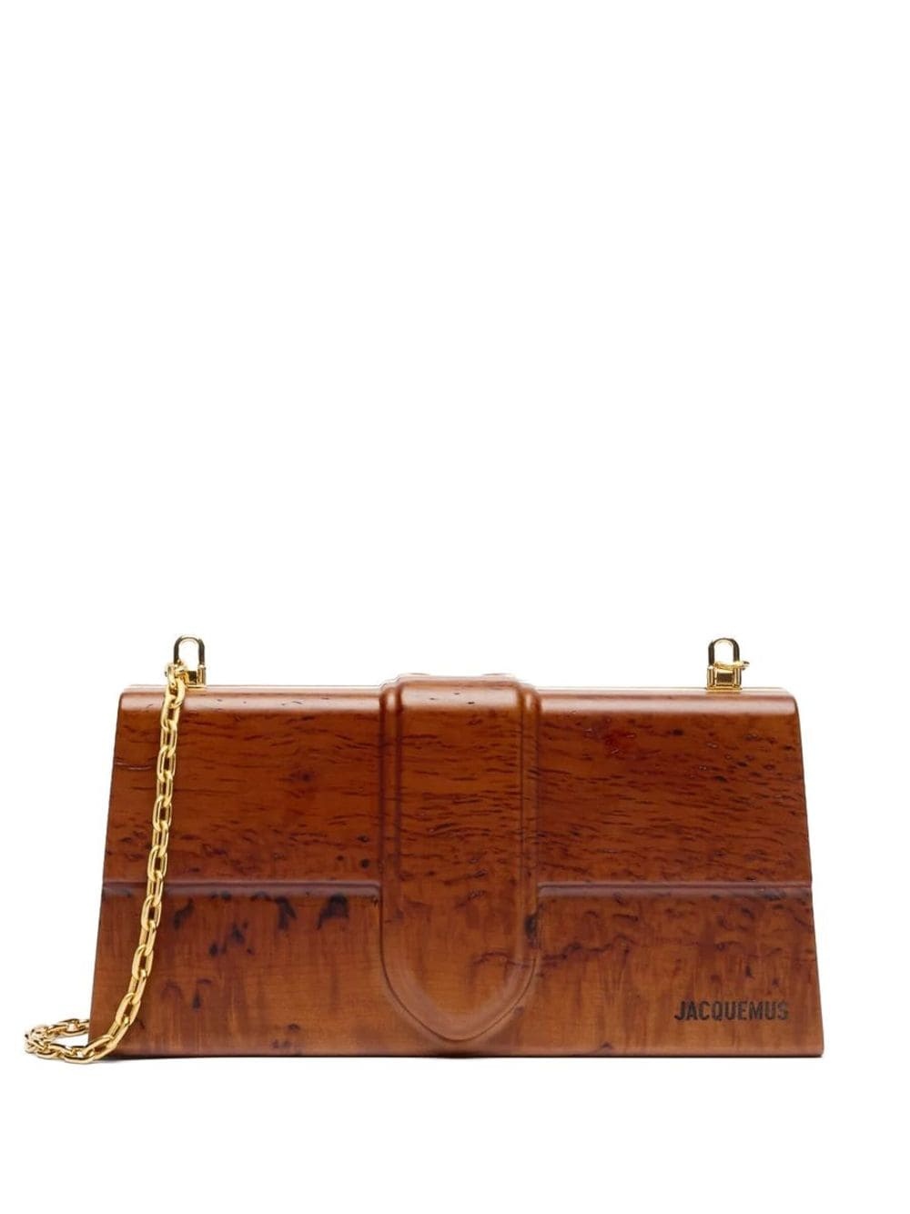 Le Bambino en bois shoulder bag Highlights - Brown - Karelian wood - Clamshell box - Magnetic fastening - Chain-link shoulder strap - Logo print to the front - Main compartment Made in Italy Composition Outer: Wood 100% Lining: Cotton 100%