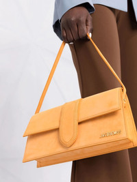 Le Bambino Long shoulder bag Jacquemus heralded the mini bag trend back in AW17 and has since become a key player in the luxury leather goods sphere. This Le Bambino Long bag is the newest addition to the Le Bambino family, designed in orange calf suede and featuring the signature gold-tone branded plaque. Made in Italy Composition Outer: Calf Leather 100% SIZE & FIT Model measurements Height 5 ft 9 in(1.75 m) Bust/Chest 30.7 in(78 cm) Hips 34.64 in(88 cm) Waist 22.83 in(58 cm) Measurement DEPTH 2.36 in(6 cm) HANDLE 8.66 in(22 cm) HEIGHT 4.72 in(12 cm) WIDTH 11.02 in(28 cm)