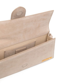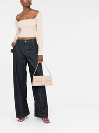 Le Bambino Long shoulder bag A larger iteration of one of their signature styles, Jacquemus' Le Bambino amplifies the brand's penchant for minimal, structured handbags. Crafted from calf leather with a single shoulder strap, the design is adorned with gold-tone logo lettering to the front. Highlights - Le bambino shoulder bag from jacquemus featuring light beige, calf leather, gold-tone hardware, gold-tone logo lettering, single shoulder strap, foldover top with magnetic fastening, main compartment, internal slip pocket and slip pocket to the rear. Made in Italy Composition Outer: Calf Leather 100% SIZE & FIT Model measurements Height 5 ft 11 in(1.8 m) Bust/Chest 31.49 in(80 cm) Hips 36.61 in(93 cm) Waist 24.4 in(62 cm) Measurement DEPTH 1.96 in(5 cm) HEIGHT 5.51 in(14 cm) STRAP 8.66 in(22 cm) WIDTH 11.02 in(28 cm)