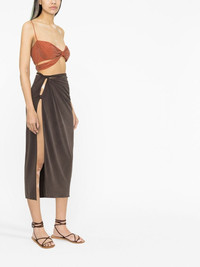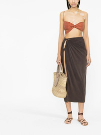 Le Bandeau asymmetric top This top from Jacquemus is characterised by its twisted bandeau design. Complete with a single shoulder strap, this piece is cut to a cropped hem. Imported Composition Cupro 93%, Elastane 7% SIZE & FIT Model measurements Height 5 ft 10 in(1.77 m) Bust/Chest 32.67 in(83 cm) Hips 35.43 in(90 cm) Waist 23.62 in(60 cm) FittingInformation This piece fits true to size. We recommend you get your regular size Cut for a slim fit Made with a mid-weight stretch fabric Measurement BUST 22.04 in(56 cm) LENGTH 7.48 in(19 cm) Washing instructions Dry Clean Only