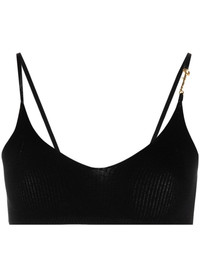 Le Bandeau Pralu knitted bralette The black Le Bandeau Pralu bralette from Jacquemus features a ribbed design and soft construction. Its only adornment comes in the form of a gold-tone logo charm on the shoulder strap. Highlights - Black - Knitted construction - Ribbed knit - Gold-tone hardware - Scoop neck - Thin shoulder straps Imported Composition Viscose 80%, Polyamide 10%, Polyester 10% SIZE & FIT Model measurements Height 5 ft 10 in(1.78 m) Bust/Chest 30.7 in(78 cm) Hips 34.64 in(88 cm) Waist 23.22 in(59 cm) Washing instructions Hand Wash