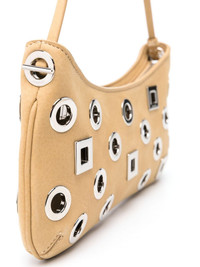 Le Bisou Rond Carre shoulder bag Punctuated with square and round-shaped eyelets, this beige iteration of Jacquemus' Le Bisou bag is emblematic of the label's playful approach to accessories. It's crafted from smooth calf leather to a compact, '00s-inspired silhouette with a buckled shoulder strap. Highlights - Beige - Calf leather - Silver-tone hardware - Adjustable shoulder strap - Top zip fastening - Logo plaque - Eyelet detailing - Cotton lining Made in Italy Composition Outer: Calf Leather 100% Lining: Cotton 100% SIZE & FIT Model measurements Height 5 ft 10 in(1.78 m) Bust/Chest 30.7 in(78 cm) Hips 36.22 in(92 cm) Waist 25.59 in(65 cm) Measurement DEPTH 0.78 in(2 cm) HEIGHT 3.93 in(10 cm) STRAP 6.69 in(17 cm) WIDTH 10.23 in(26 cm)