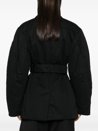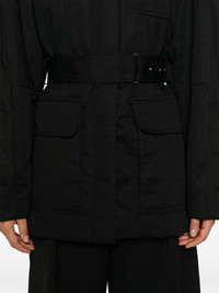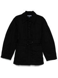 Le Blouson Bari jacket Highlights - Black - Cotton blend - Canvas - Front press-stud and zip fastening - Spread collar - Long sleeves - Seam detailing - Belted waist - Chest patch pocket - Two side flap pockets - American rear vent - Full lining - Straight hem Imported Composition Outer: Cotton 82%, Linen/Flax 18% Lining: Polyester 100% SIZE & FIT Model measurements Height 5 ft 11 in(1.8 m) Bust/Chest 33.07 in(84 cm) Hips 37.4 in(95 cm) Waist 25.19 in(64 cm) FittingInformation Designed to be unstructured, offering a loose fit throughout The belt offers adjustability for fitted preferences Made from a padded non-stretch fabric, giving it no natural elasticity Washing instructions Hand Wash