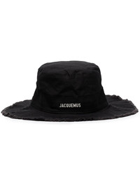 Le Artichaut bucket hat Jacquemus' AW21 collection conjured a vision of effortless styling, inspired by the French countryside. In a black hue, the Le bob Artichaut bucket hat is punctuated with a small silver-tone plaque to the front and features a delicately frayed dropped wide brim. Highlights - Black - Cotton - Black - Cotton - Panelled design - Frayed edge - Silver-tone hardware - Dropped wide brim - Tonal stitching - Toggle fastening Imported Composition Cotton 100% SIZE & FIT Model measurements Height 5 ft 10 in(1.78 m) Bust/Chest 31.88 in(81 cm) Hips 34.64 in(88 cm) Waist 23.22 in(59 cm) Measurement BRIM 2.75 in(7 cm) CIRCUMFERENCE 21.65 in(55 cm)
