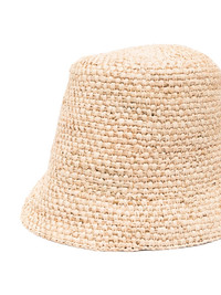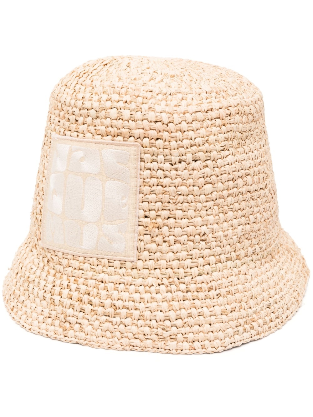 Le Bob Ficiu bucket hat Simon Porte Jacquemus makes a case for the bucket hat with this Le Bob Ficiu. Exhibiting a woven construction, it's complete with a large logo patch to the front for a branding-focused finish. Highlights - Beige - Woven raffia design - Logo patch to the front - Narrow brim - Slip-on style Made in Italy Composition Raffia 100% SIZE & FIT Measurement BRIM 1.57 in(4 cm) CIRCUMFERENCE 22.83 in(58 cm)