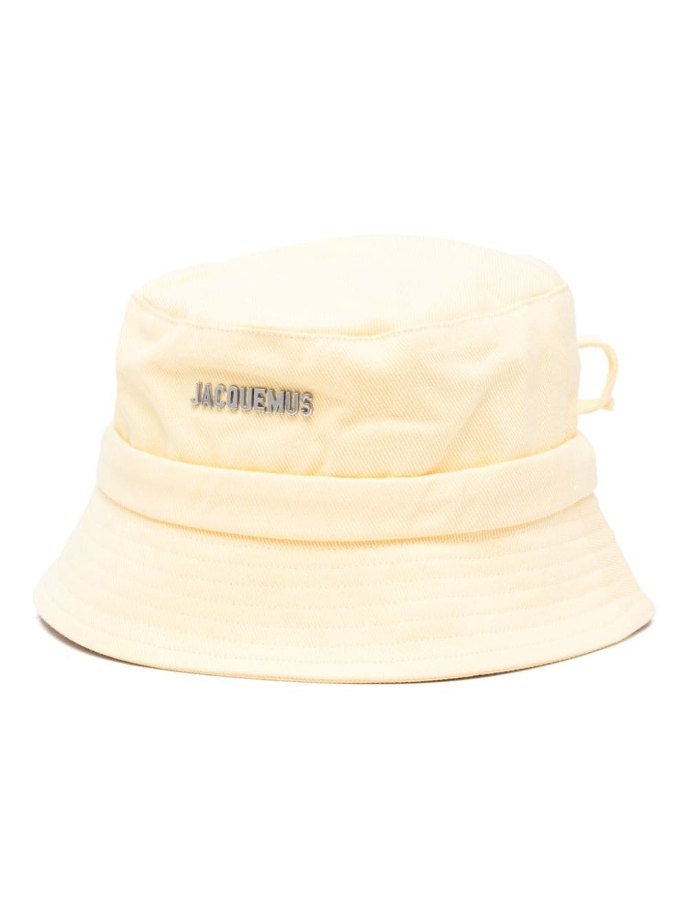 Le Bob Gadjo bucket hat Highlights - Pale yellow - Cotton - Twill weave - Silver-tone logo lettering - Strap detailing - Flat crown - Tie-fastening straps - Dropped narrow brim - Full lining Imported Composition Cotton 100% SIZE & FIT Measurement BRIM 2.16 in(5.5 cm) CIRCUMFERENCE 22.83 in(58 cm)