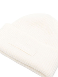 Le Bonnet Gros Grain beanie Highlights - Off-white - Knitted construction - Ribbed knit - Grosgrain logo patch to the front - Turn-up brim Made in Italy Composition Alpaca Wool 49%, Polyamide 30%, Wool 21%