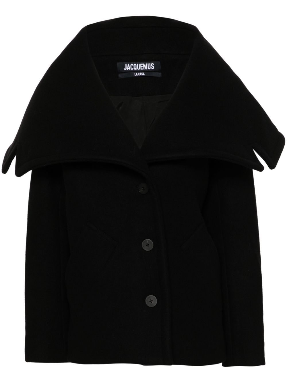 Le Caban Caruso jacket Highlights - Black - Virgin wool - Felted - Front button fastening - Oversized folded collar - Long sleeves - Split cuffs - Two side welt pockets - Adjustable strap to the rear - Italian rear vents - Full lining - Straight hem Imported Composition Lining: Cotton 97%, Elastane 3% Outer: Virgin Wool 100% SIZE & FIT Model measurements Height 5 ft 10 in(1.78 m) Bust/Chest 33.85 in(86 cm) Hips 36.61 in(93 cm) Waist 26.77 in(68 cm) FittingInformation Designed to be unstructured, offering a loose fit throughout The belt offers adjustability for fitted preferences Made from a midweight non-stretch fabric
