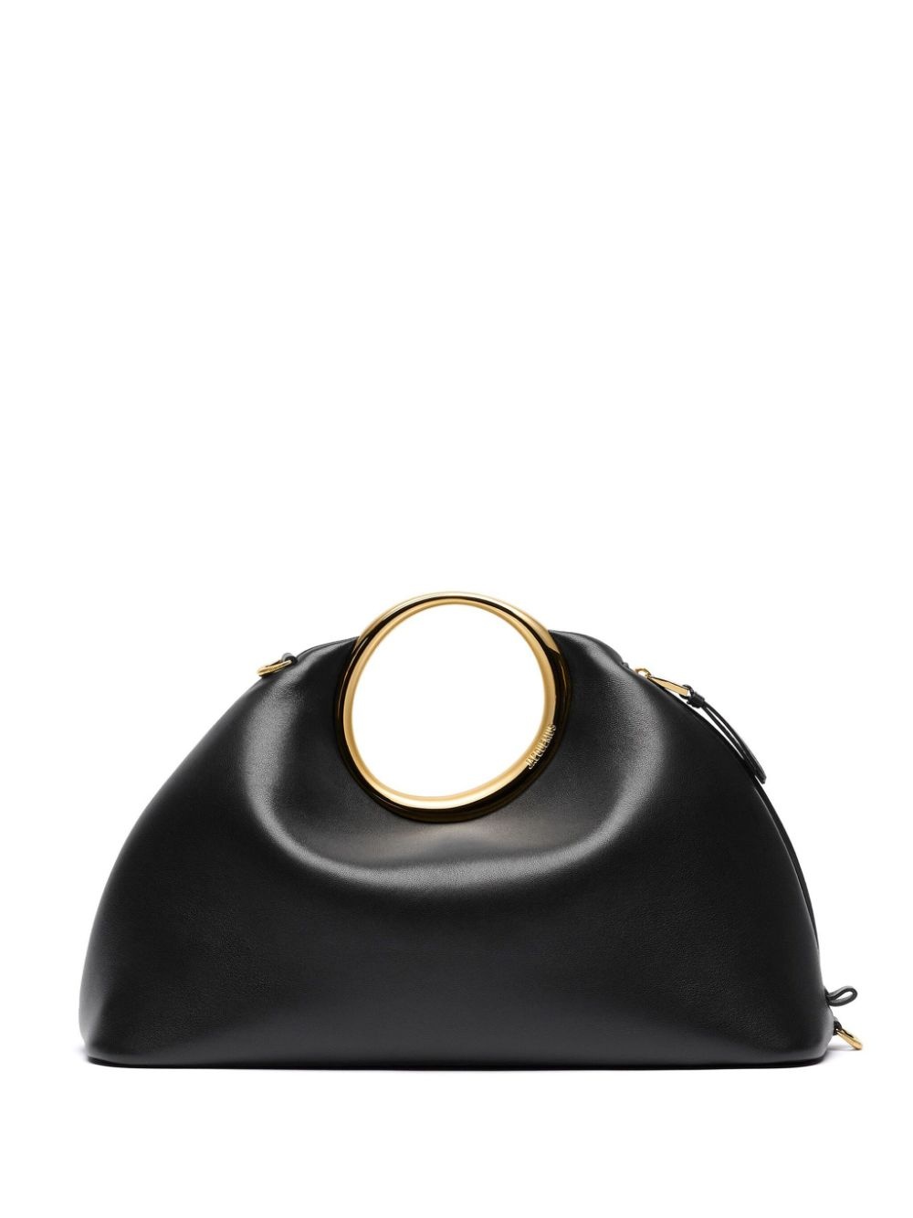 Le Calino top-handle bag Jacquemus' Le Calino bag is a fine demonstration of the label's propensity for structured designs. Crafted from black nappa leather, it is adorned with gold-tone top handles and punctuated with logo lettering for a branded finish. Highlights - Black - Nappa leather - Structured top handles - Engraved logo - Adjustable detachable shoulder strap - Top zip fastening - Main compartment - Slip pocket to the rear - Gold-tone hardware Made in Italy Composition Outer: Nappa Leather 100% Lining: Cotton 100% SIZE & FIT Measurement DEPTH 4.92 in(12.5 cm) HEIGHT 8.26 in(21 cm) WIDTH 12.99 in(33 cm)