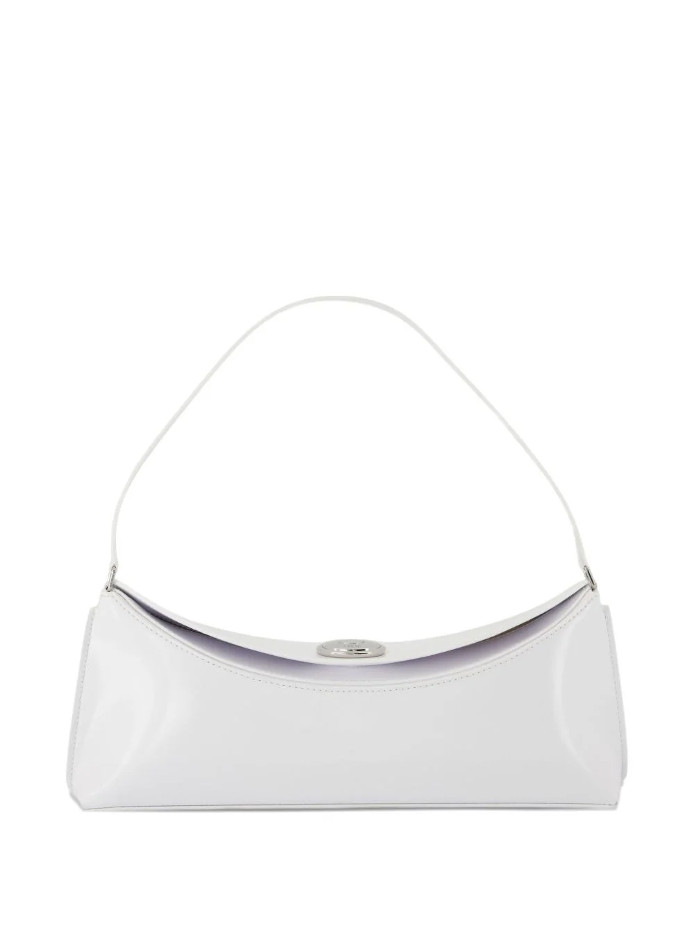 Le Calisso patent leather shoulder bag Highlights - White - Patent leather - Top handle - Curved silhouette - Button fastening Made in France Composition Outer: Calf Leather 100% Lining: Cotton 100% SIZE & FIT Measurement DEPTH 1.5 in(3.8 cm) HEIGHT 3.9 in(9.9 cm) WIDTH 13.7 in(34.7 cm)