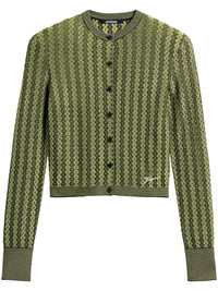 Le Cardigan Marino cardigan Highlights - Fern green - Front button fastening - Crew neck - Ribbed cuffs and hem - Patterned intarsia knit Imported Composition Viscose 93%, Polyester 4%, Spandex/Elastane 3%