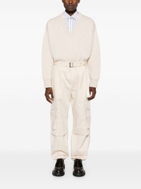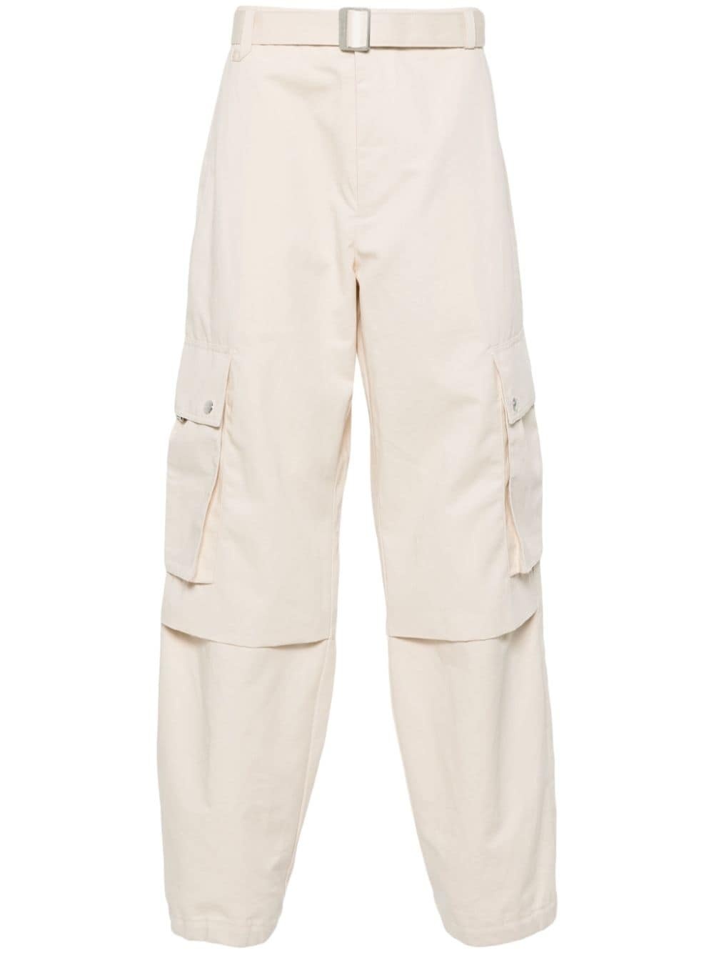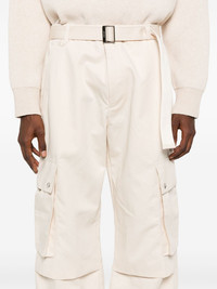Le Cargo straight trousers Highlights - Cream white - Cotton blend - Slub texture - Belted waist - Belt loops - Two diagonal pockets to the sides - Two side cargo pockets - Rear flap pocket - Straight leg - Concealed front button, hook and zip fastening Imported Composition Outer: Cotton 82%, Linen/Flax 18% Lining: Cotton 97%, Spandex/Elastane 3% SIZE & FIT Model measurements Height 6 ft 2 in(1.88 m) Bust/Chest 36.61 in(93 cm) Hips 35.82 in(91 cm) Waist 27.95 in(71 cm) FittingInformation Designed for a straight-leg, allowing for an unrestricted and comfortable fit over the leg The internal drawstring at the hem allows for fitted preferences at the ankle Made from a midweight non-stretch fabric This piece fits true to size – take your usual size