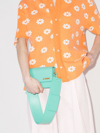 Le Carinu leather shoulder bag Named after his mother's maiden name, Jacquemus, the brand's logo is featured in a gold-tone hardware plaque at the front of this shoulder bag. In a tonal, turquoise green colourway, it reflects the designer's influences of nature from their native South of France. Highlights - Turquoise green leather le carinu logo-plaque shoulder bag from jacquemus featuring gold-tone logo plaque, gold-tone hardware, foldover top with magnetic fastening, main compartment and single shoulder strap. Made in Italy Composition Leather 100% SIZE & FIT Model measurements Height 5 ft 10 in(1.78 m) Bust/Chest 31.49 in(80 cm) Hips 34.25 in(87 cm) Waist 23.62 in(60 cm) Measurement DEPTH 1.57 in(4 cm) HEIGHT 4.72 in(12 cm) STRAP 11.02 in(28 cm) WIDTH 7.28 in(18.5 cm)
