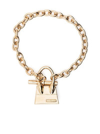 Le Chiquito Barr bracelet Released in 2019, Jacquemus' Le Chiquito bag has become a brand staple. Here, the iconic accessory takes the form of a charm, embellishing this gold-tone bracelet. Highlights - Le chiquito chain bracelet from jacquemus featuring gold-tone, metal, bronze, logo charm, curb chain and toggle fastening. Made In Italy SIZE & FIT Measurement PENDANT LENGTH 1.18 in(3 cm) PENDANT WIDTH 0.74 in(1.9 cm) TOTAL LENGTH 6.25 in(15.9 cm) WIDTH 0.15 in(0.4 cm)