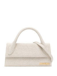 Le Chiquito Long tote bag Jaquemus sticks with its joyful and optimistic approach to fashion for its AW21 collection and presents iterations of some of the brand's most popular mini bags in tune with the upcoming season. Boasting a refined gold-tone plaque at the front, Le Chiquito Long is an extended version of the original Chiquito and is crafted from linen. Highlights - Le chiquito long bag from jacquemus featuring grey, linen, gold-tone logo lettering, foldover top with magnetic fastening, single top handle, single shoulder strap and internal card slot. . Made in Italy Composition Lining: Cotton 100% Outer: Calf Leather 100%, Cotton 44%, Linen/Flax 44%, Acrylic 12% SIZE & FIT Model measurements Height 5 ft 11 in(1.8 m) Bust/Chest 31.49 in(80 cm) Hips 36.22 in(92 cm) Waist 25.59 in(65 cm) Measurement DEPTH 1.96 in(5 cm) HANDLE 5.11 in(13 cm) HEIGHT 3.93 in(10 cm) STRAP 22.83 in(58 cm) WIDTH 8.66 in(22 cm)