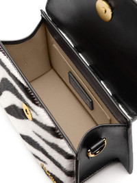 Le Chiquito mini bag Highlights - Black/white - Calfskin - Calf leather - Zebra print - Gold-tone logo lettering - Foldover top with magnetic fastening - Adjustable detachable shoulder strap - Single rolled top handle - Internal slip pocket - Internal logo patch - Main compartment - Cotton twill lining Made in Italy Composition Outer: Calf Leather 100% SIZE & FIT Measurement HEIGHT 4.72 in(12 cm) WIDTH 3.54 in(9 cm)