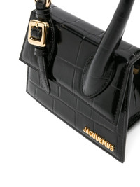 Le Chiquito Moyen Boucle tote bag One of Jacquemus' most celebrated silhouettes, the Le Chiquito is defined by its structured shape. This buckle-embellished medium iteration is crafted in Italy from smooth calf leather embossed with a crocodile effect for added texture. Highlights - Black - Calf leather - Embossed crocodile effect - Gold-tone logo lettering - Decorative buckle detailing - Foldover top with magnetic fastening - Single rolled top handle - Adjustable detachable shoulder strap - Cotton lining - Internal logo patch - Internal patch pocket - Main compartment - Gold-tone hardware - This piece comes complete with a protective dust bag. Made in Italy Composition Outer: Calf Leather 100% Lining: Cotton 100% SIZE & FIT Model measurements Height 5 ft 11 in(1.8 m) Bust/Chest 32.67 in(83 cm) Hips 36.22 in(92 cm) Waist 24.4 in(62 cm) Measurement DEPTH 3.14 in(8 cm) HANDLE 5.9 in(15 cm) HEIGHT 4.72 in(12 cm) STRAP 20.47 in(52 cm) WIDTH 7.08 in(18 cm)