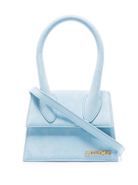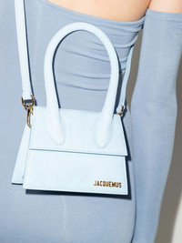 Le Chiquito Moyen tote bag First launched as part of the SS18 collection, Jacquemus' Le Chiquito bag led the mini accessory trend. Designed in baby blue, the smooth nubuck construction is simply punctuated with gold-tone logo lettering, allowing the recognisable silhouette to take the focus. Highlights - Light blue - Nubuck leather - Gold-tone logo lettering - Adjustable detachable shoulder strap - Single rounded top handle - Foldover top with magnetic fastening - Main compartment - Internal slip pocket Made in Italy Composition Nubuck Leather 100% SIZE & FIT Model measurements Height 5 ft 10 in(1.77 m) Bust/Chest 31.1 in(79 cm) Hips 34.64 in(88 cm) Waist 25.19 in(64 cm) Measurement DEPTH 3.14 in(8 cm) HANDLE 5.51 in(14 cm) HEIGHT 5.11 in(13 cm) STRAP 19.68 in(50 cm) WIDTH 7.08 in(18 cm)
