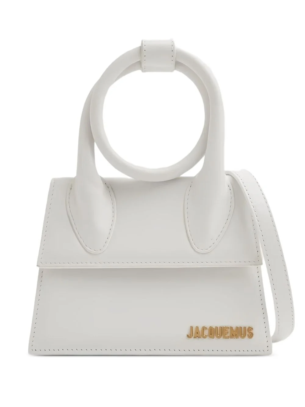 Le Chiquito Noeud bag Highlights - White - Leather - Top handle - Logo lettering - Flap top - Magnetic closure Imported Composition Outer: Leather 100% SIZE & FIT Measurement DEPTH 2.36 in(6 cm) HEIGHT 5.31 in(13.5 cm) WIDTH 9.05 in(23 cm)