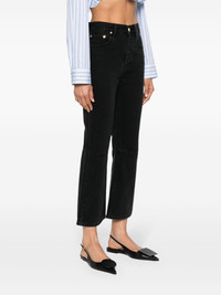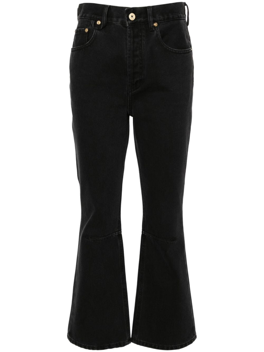 Le de-Nimes court high-rise flared jeans Highlights - Black - Cotton blend - Denim - Logo patch to the rear - Logo-engraved buttons - High-waisted - Belt loops - Button fly fastening - Classic five pockets - Flared cropped leg - Slim cut Made in Italy Composition Regenerative Cotton 52%, Cotton 48% SIZE & FIT Model measurements Height 5 ft 10 in(1.78 m) Bust/Chest 33.07 in(84 cm) Hips 36.61 in(93 cm) Waist 24.8 in(63 cm) FittingInformation Designed with a flared hem, these jeans allow for a close fit at the waist with a slim fit over the leg and widening towards the hem Cropped in length Sturdy and hard-wearing, this denim piece offers no stretch This piece fits true to size – take your usual size