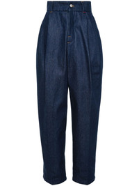 Le de-Nimes Curzio jeans Highlights - Indigo blue - Cotton - Denim - Button fly fastening - Belt loops - Pleat detailing - Two side inset pockets - Two rear patch pockets - High-rise - Tapered leg Made in Italy Composition Cotton 100% SIZE & FIT FittingInformation Designed with a wide leg cut, these jeans allow for a close fit at the waist and offer a loose and roomy fit over the leg Sturdy and hard-wearing, this denim piece offers no stretch Washing instructions Machine Wash