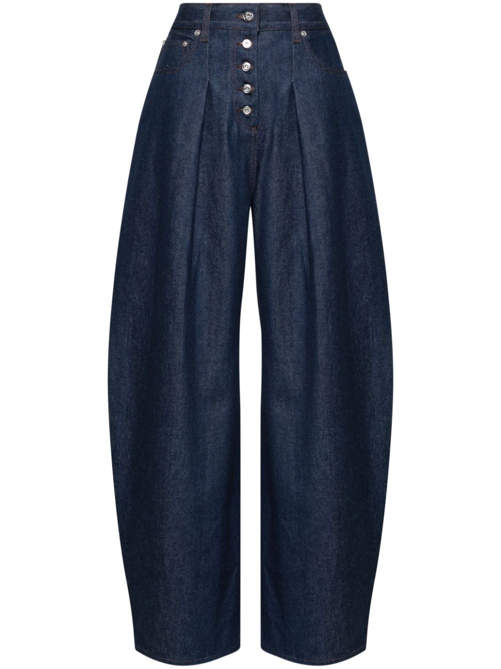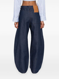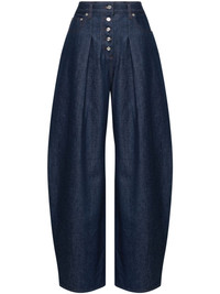 Le De-Nimes Ovalo mid-rise wide-leg jeans Highlights - Navy blue - Cotton - Denim - Logo patch to the rear - Pleat detailing - High-rise - Belt loops - Button fly fastening - Wide leg - Classic five pockets - Straight hem - Long length Imported Composition Regenerative Cotton 100% SIZE & FIT Model measurements Height 5 ft 10 in(1.77 m) Bust/Chest 33.07 in(84 cm) Hips 37 in(94 cm) Waist 24.8 in(63 cm) Measurement FRONT RISE 13.77 in(35 cm) INSIDE LEG 29.92 in(76 cm) HIPS 41.73 in(106 cm) WAIST 29.92 in(76 cm) FittingInformation Designed with a wide leg cut, these jeans allow for a close fit at the waist and offer a loose and roomy fit over the leg Sturdy and hard-wearing, this denim piece offers no stretch This piece fits true to size – take your usual size Washing instructions Machine Wash