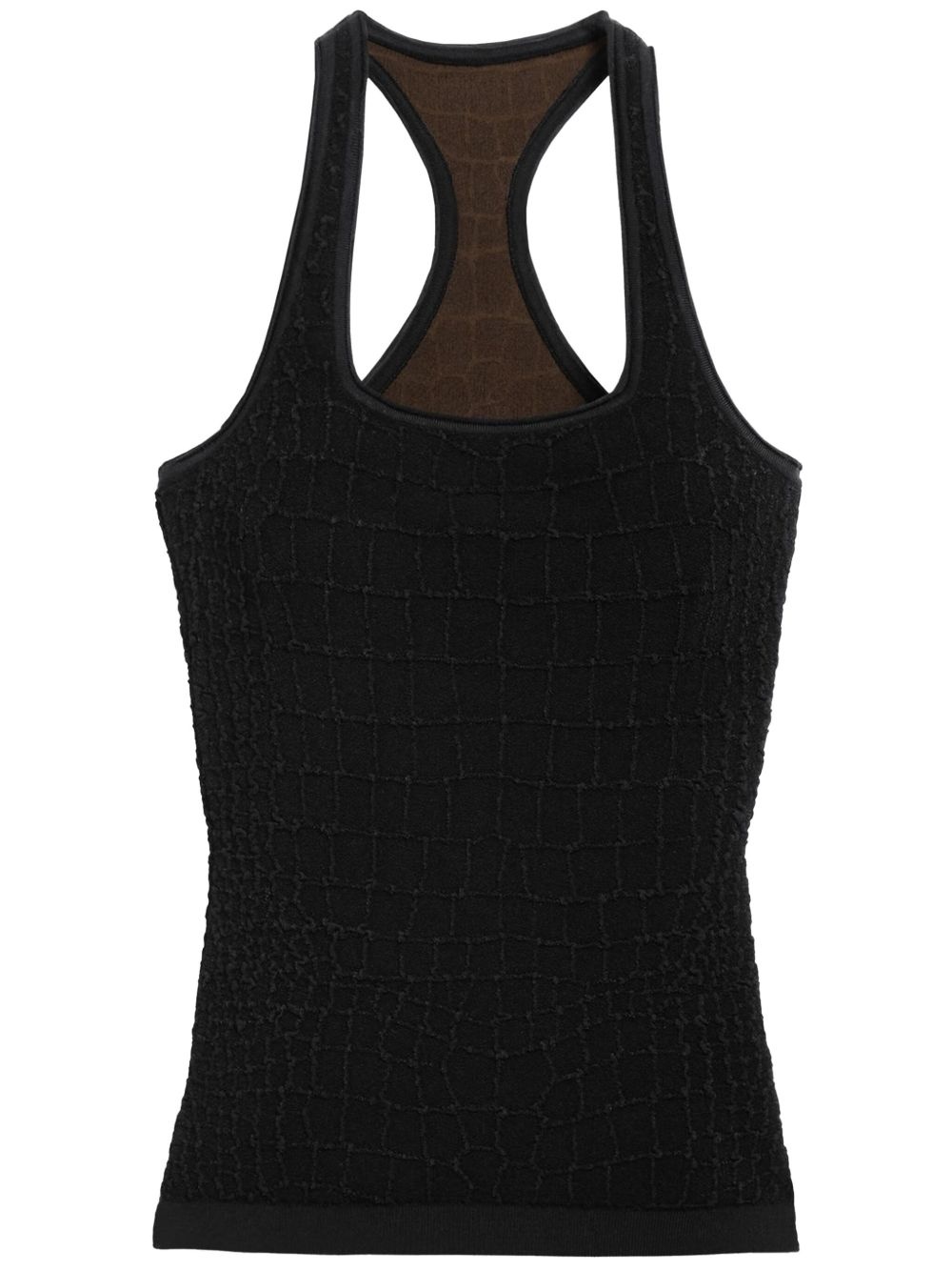 Le Debardeur Scala vest Highlights - Black - Scoop neck - Racerback - Embossed crocodile effect Imported Composition Viscose 72%, Polyamide 25%, Spandex/Elastane 3% SIZE & FIT FittingInformation Designed for a slim fit that sits just away from the body offering a close yet comfortable fit Made from a midweight stretch fabric, this piece offers elasticity and flexibility when worn